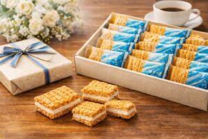 定番って、言い換えると「多くの人の合格点を取り続けたもの」です。甘さが強すぎない、食感がわかりやすい、個包装で配れる、箱で見栄えがする。手土産に必要な要素が最初からパッケージ化されてる。だから失敗確率が下がる。これ、地味にすごいです。
